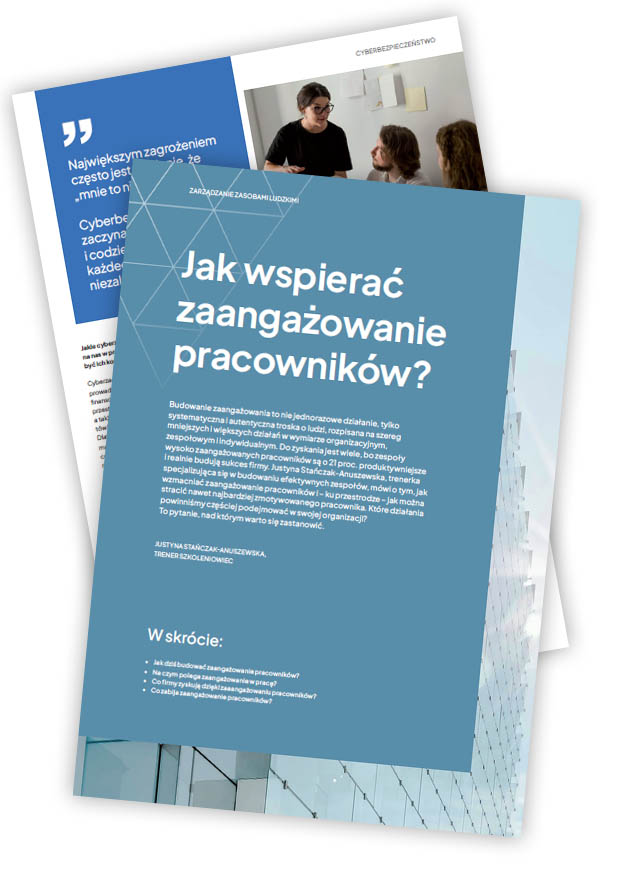 Dużo uwagi poświęcamy tematowi budowania zaangażowania pracowników oraz przeciwdziałaniu cichym zagrożeniom w pracy, które obniżają dobrostan psychiczny. Uczulamy również na kwestię naszych codziennych nawyków w pracy w kontekście budowania odporności cyfrowej organizacji. Nasi eksperci piszą także o tym, co zmienią przepisy dotyczące jawności wynagrodzeń oraz jakie zmiany przepisów w ochronie środowiska czekają nas w najbliższym czasie.